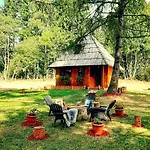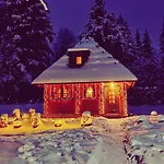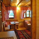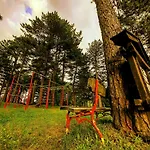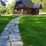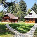 Zlatiborske Brvnare Villa, som ligger ungefär 25 minuter till fots från Dino Park, erbjuder gästerna en terrass där de kan koppla av.